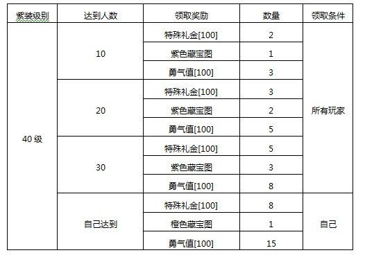 活动规则:开服前3天,只要装备全身紫装,即可获得奖励。如果有多人达成,更可以领取更多奖励。