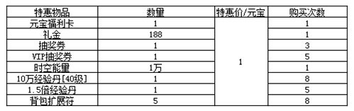 6月1日—6月2日,玩家可以在大卖场中花费1元宝选购各种元宝道具,机会仅有一次,绝对不容错过。