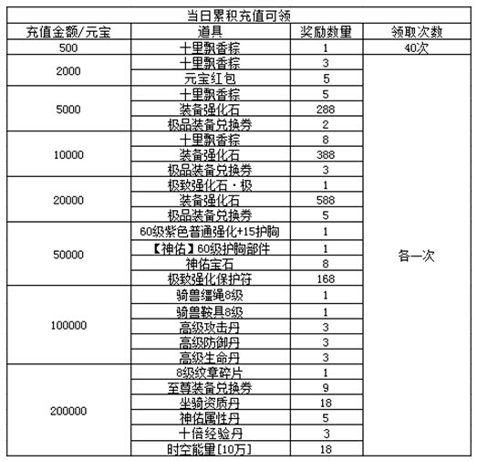 6月1日—6月2日,只要每日充值达到指定金额,每天都有极品装备等你拿!