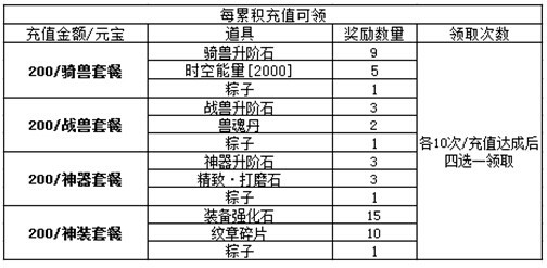 6月1日—6月2日,只要充值达到200元宝,即可在多种套餐豪利中随意挑选一种!