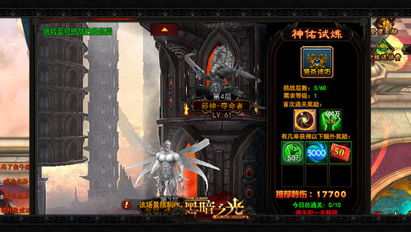 玩家可以通过挑战神佑试炼中的BOSS获得升阶所需的必要道具,并得到额外的经验、时空能量、装备强化石、洗练石、礼金和装备部件。