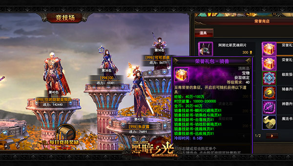 《黑暗之光》的骑兽技能会带给玩家不少的帮助,骑乘战斗不仅拉风,而且还能节省很多跑路时间,其他技能的使用会在pk中显得更加游刃有余。赶快加入《黑暗之光》,体验最炫酷的骑兽战斗吧!