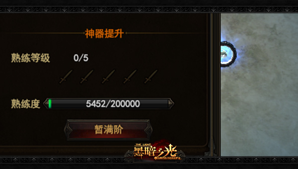 熟练度是神器升级的重要前提,并且神器等级越高,所需熟练度数值越多。每触发一次“神之怒”,即可提高一点熟练度,想要快速的升级神器,还是需要把神之怒等级升的高一些,让它触发频率增加。
