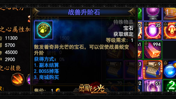 前不久刚刚开放了“魔之心”系统。魔之心的升级材料就是战兽升阶石,而现在的11阶战兽也需要大量的战兽升阶石。如此大量的战兽升阶石要怎么获得呢?《黑暗之光》在此次更新中优化了兽魂魔窟战兽升阶石的掉率,玩家升级到幽冥之主将变得简单不少!