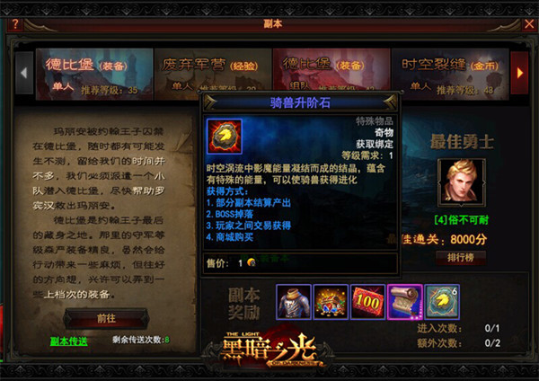 快一步胜千里 360《黑暗之光》骑兽升阶石获取攻略