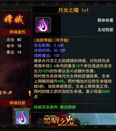 3D硬派格杀双端网游360《黑暗之光》中月宫之主嫦娥为玩家带来了月之光辉的能量,并赐予各位强大的神魂技能。