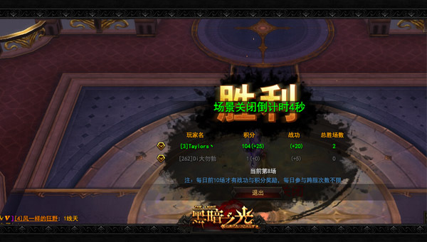 匹配会按服务器排序划分战区。报名参赛后,系统将记录积分、胜率、连胜、最大连胜等信息。玩家可以无限次数参加,但只有前10场记录以上战斗信息。每场战斗最多持续5分钟,超过5分钟后将按双方剩余血量及战斗力判定胜负。
