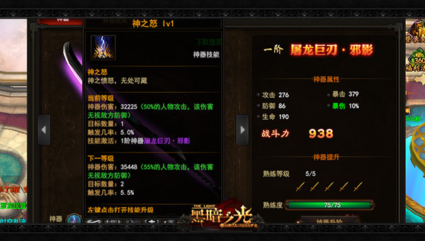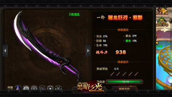360《黑暗之光》中,神器会给玩家的pvp与pve带来不小的帮助,赶快养成一把高阶神器吧,绝不会后悔!