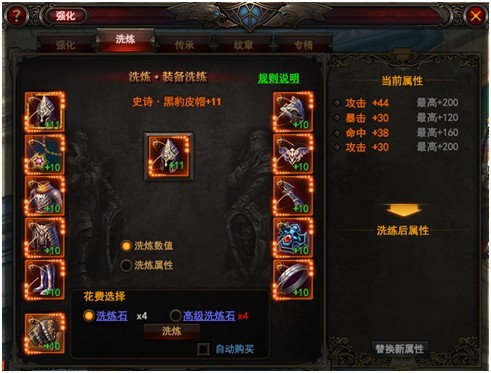 装备洗练可让装备重新刷新附加属性,消耗的洗练石越高级,随机刷新附加属性越高。