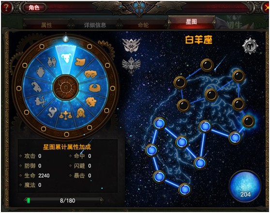 在混乱的时空中,星图很重要的地位。结合了天象星位,根据不同星座加成不同的人物属性数值。星图点亮越多,属性加成越高。