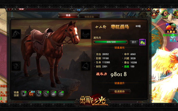 骑兽皮肤:每次升阶,均可获得该骑兽的皮肤,方便玩家切换坐骑皮肤。