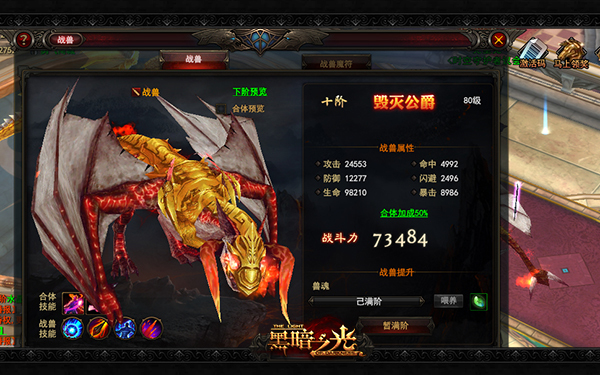 战兽升阶:战兽兽魂值满时,可升阶至下一阶形态,升阶将提升战兽较多属性。
